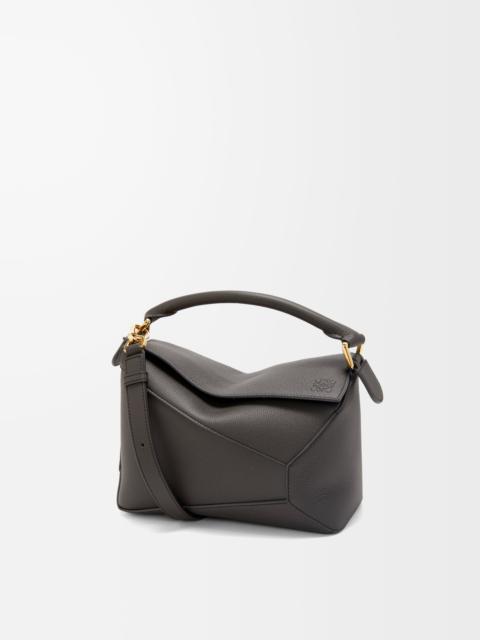 The Puzzle bag is the debut bag for LOEWE by Creative Director Jonathan Anderson. A cuboid shape and precise cutting technique create Puzzle’s distinctive geometric lines. This small version is crafted in soft grained calfskin with overlapped edges. - The small Puzzle can hold for example a large wallet, all mobile phones and sunglasses - Shoulder, crossbody, top handle or clutch carry - Removable and adjustable shoulder strap - Zip closure with calfskin pull - Exterior zip rear pocket and one internal slip pockets - Customisable with strap and personalisation charms - Herringbone cotton canvas lining - Embossed Anagram Details - Colour: Pearl Grey - Metallic colour: Palladium - Main material: Soft Grained Calf - Strap length: 80.5 - 115.5 cm - Handle drop: 7 cm - Weight: 0.65 kg - Height (cm): 16.5 - Width (cm): 24 - Depth (cm): 10.5 - Height (inch): 6.5 - Width (inch): 9.4 - Depth (inch): 4.1 - Model ID: A510P60X30 - CIL: 0010896728 - Made in: Spain