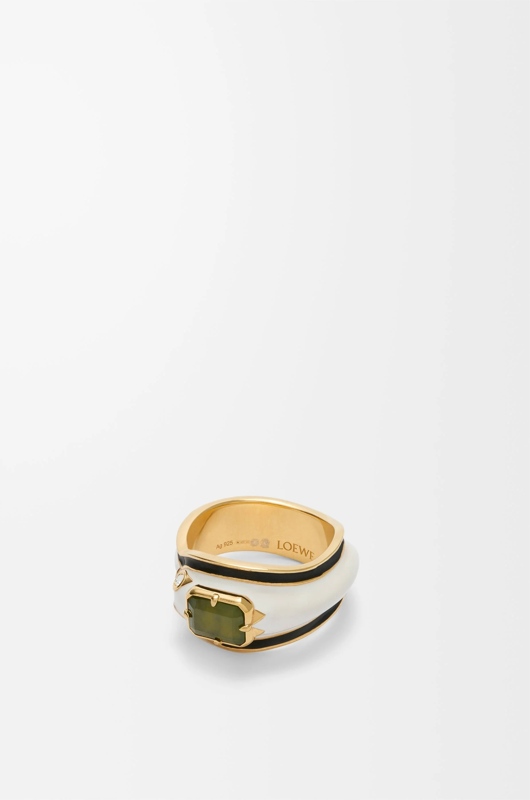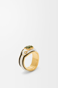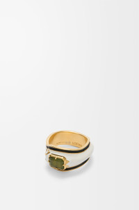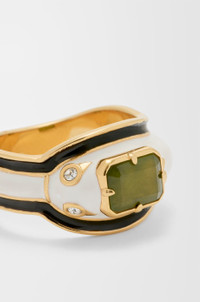 Snake ring in sterling silver with a gold finish and hand-painted enamel with crystal embellishments and a baguette-cut jade stone. This ring is part of the New Year capsule collection. Colour: Gold/White Main material: Sterling Silver/Enamel/Crystal/Jade Weight: 0.0081 kg Height: 0.55 cm Depth: 0.3 cm Made in: Italy