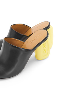 Mule sandal in calfskin with an objets trouvés heel with a chunky soap heel. - 90mm heel - Calfskin sole and insole Details - Colour: Black/Yellow - Main material: Calf - Heel height: 9 - Weight : 0.6 kg - Model ID: L815379X49 - Made in: Italy