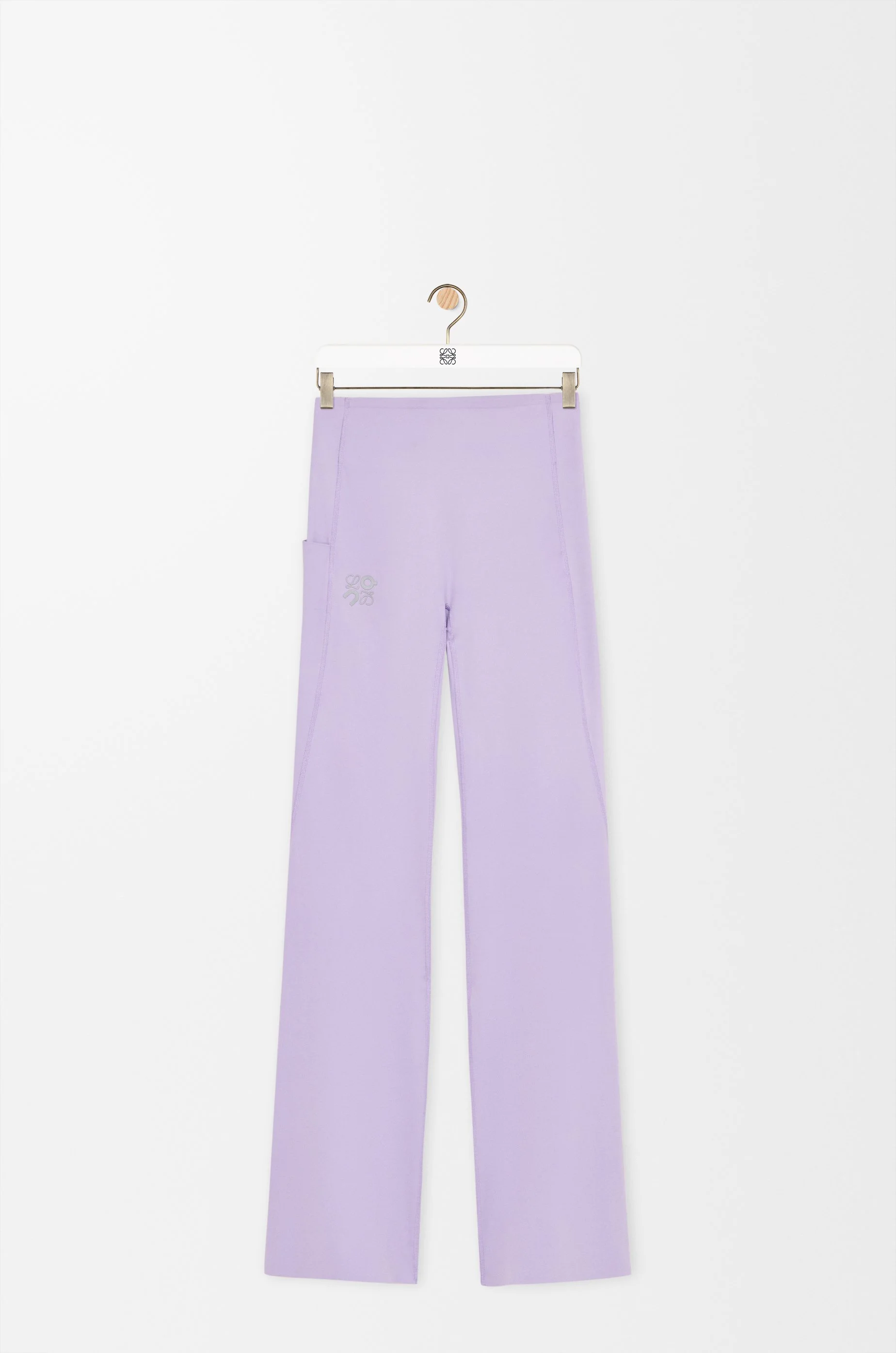Trousers in lightweight sculpting stretch technical jersey. - Slim fit, regular length - High waist, bootleg - Elasticated waist - Side pocket, concealed inside pocket at the back - Reflective Anagram On print placed at the front - Reflective LOEWE On print placed at the back Colour: Lilac Main material: Polyester/Elastane Weight: 0.3 kg Materials & care Main Material: 72% polyester 28% elastane