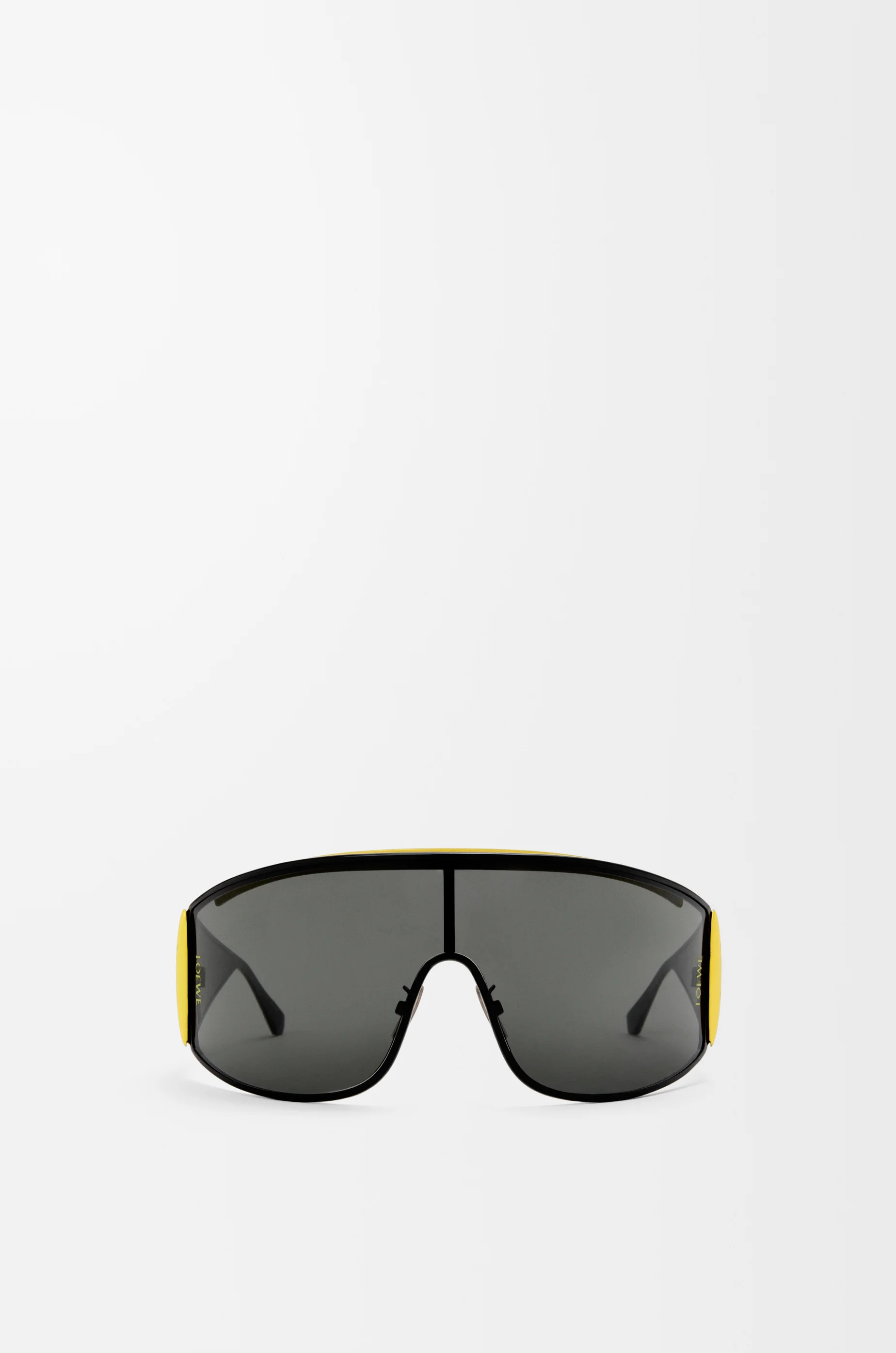 Shield-shaped sunglasses in a wraparound metal construction with a lens that extends into a distinctive triangle-shaped temple, complemented by trims in a gold, black or bright-hued finish. - Universal fit - UVA/UVB protection - Engraved LOEWE Colour: Black/Yellow Main material: Metal Made in: Italy