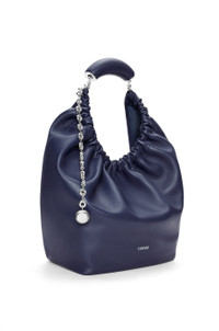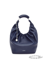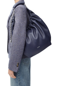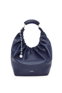 The Squeeze is an innovative expression of traditional craftsmanship. Its light ruched body is complemented by signature details such as an adjustable donut chain and a tactile squeezy handle. This medium version is crafted in nappa lambskin. - Shoulder, crossbody or hand carry - Adjustable chain strap with Anagram Pebble and additional chain to extend the strap further - Magnetic closure - Internal zipped pocket - Unlined - Gold or silver embossed LOEWE Details - Colour : Abyss Blue - Metallic colour : Palladium - Main material : Mellow Nappa Lambskin - Strap length : 45 - 81 cm - Handle drop : 24 - 42 cm - Weight : 0.72 kg - Height (cm) : 33 - Width (cm) : 34 - Depth (cm) : 13.5 - Height (inch) : 13 - Width (inch) : 13.4 - Depth (inch) : 5.3 - Model ID : A914Q37X01 - CIL : - 0011091675 - Made in : Spain