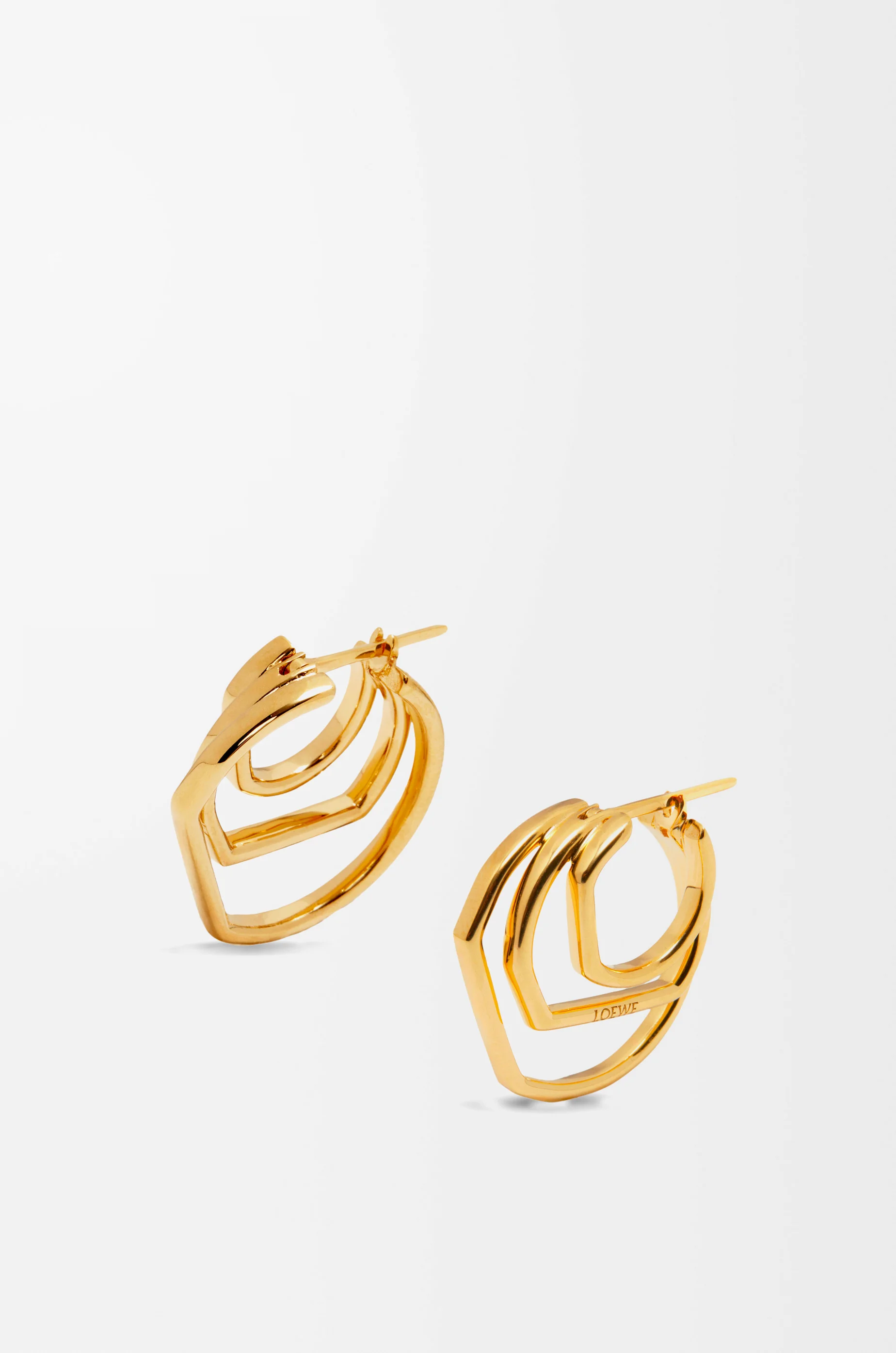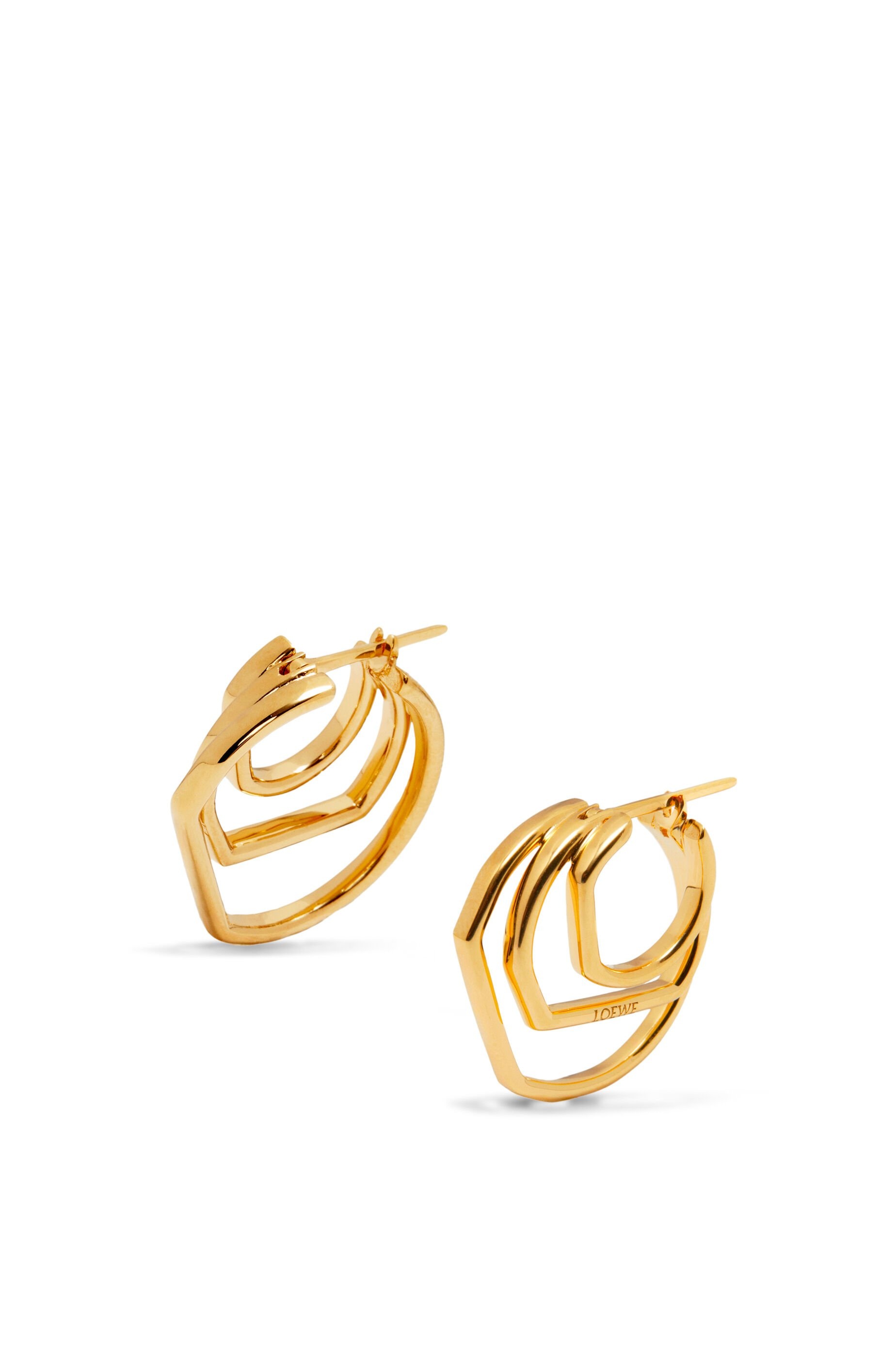 Hoop earrings in sterling silver with a gold finish featuring layered geometric shapes. - Stud fastening Details - Colour : Gold - Metallic colour : Gold - Main material : Sterling Silver - Weight : 0.01 kg - Model ID : J510239X03 - CIL : - 0011091113 - Made in : Italy