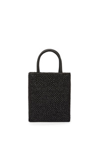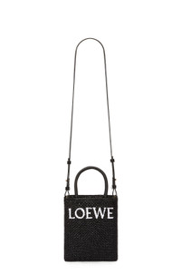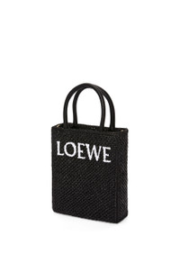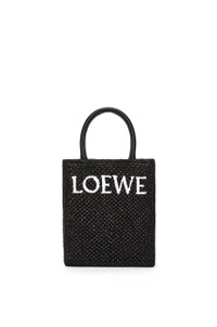 Simple and striking, the Standard Tote has a clean silhouette, pragmatic shape and top handles. This A5 version is crafted in raffia with calfskin top handles and a contrasting LOEWE signature. - Hand or shoulder carry - Detachable and adjustable strap Details - Colour: Black/White - Metallic colour: Gold - Main material: Raffia - Strap length: 107 - 117 cm - Handle drop: 10 cm - Weight: 0.34 kg - Height (cm): 21.5 - Width (cm): 17 - Depth (cm): 6 - Height (inch): 8.5 - Width (inch): 6.7 - Depth (inch): 2.4 - Model ID: A563S30X09 - CIL: 0010852671 - Made in: Spain