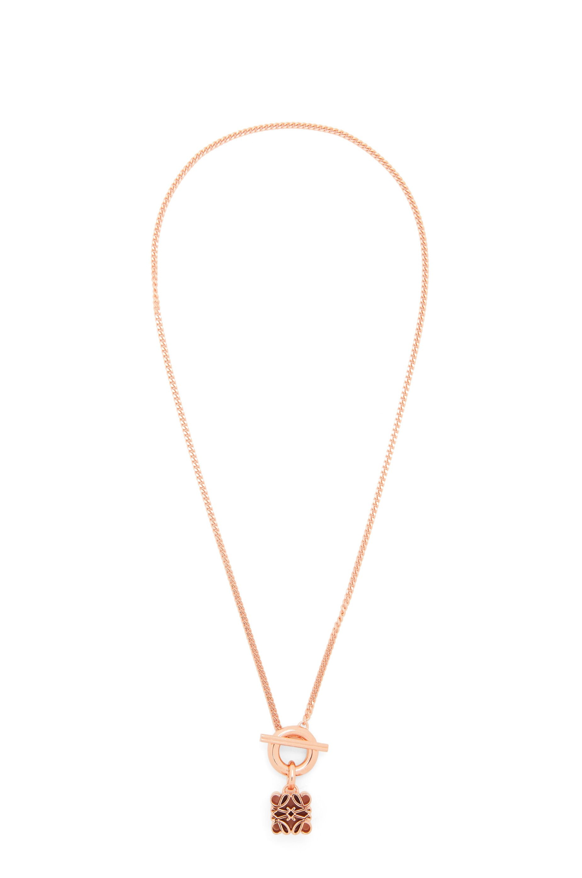 Pendant necklace crafted in sterling silver with a gold rose finish. Anagram pendant and a bar and ring fastening. - Engraved with LOEWE Details - Colour : Rose Gold - Metallic colour : Gold - Main material : Sterling Silver - Weight : 0.016 kg - Height (cm) : 1.2 - Width (cm) : 42 - Depth (cm) : 0.8 - Height (inch) : 0.5 - Width (inch) : 16.5 - Depth (inch) : 0.3 - Model ID : J821241X23 - CIL : - 0010808863 - Made in : Italy