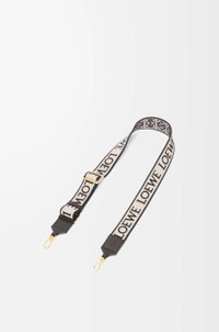 Detachable strap crafted in calfskin and jacquard with a LOEWE pattern on one side and an Anagram pattern on the reverse. - 4cm wide - Hook fastenings - Detachable and adjustable - Embossed Anagram Details - Colour: Navy/Black - Metallic colour: Gold - Main material: Jacquard/Calf - Strap length: 65 - 105 cm - Weight: 0.13 kg - Width (cm): 105 - Depth (cm): 4 - Width (inch): 41.3 - Depth (inch): 1.6 - Model ID: C073T87X01 - CIL: 0010623999 - Made in: Spain