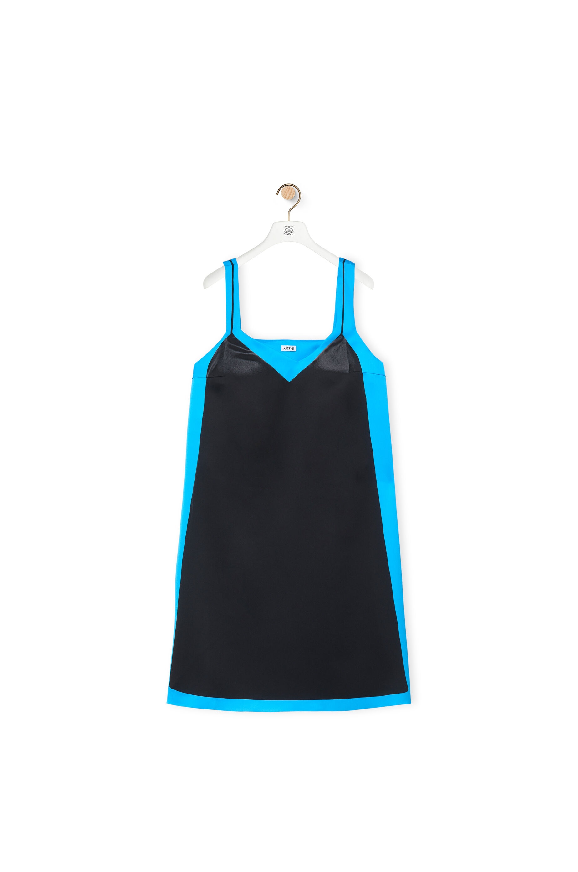 Strappy dress crafted in fluid technical duchesse satin. - Relaxed fit - Short length - A-line silhouette - Trompe l'oeil placed digital print - V neckline - Wide straps - Laser cut hem Details - Colour: Black/Blue - Main material: Polyester - Weight: 0.2 kg - Model ID: S359Y09XAO - Made in: Italy