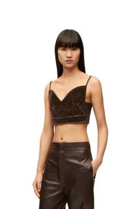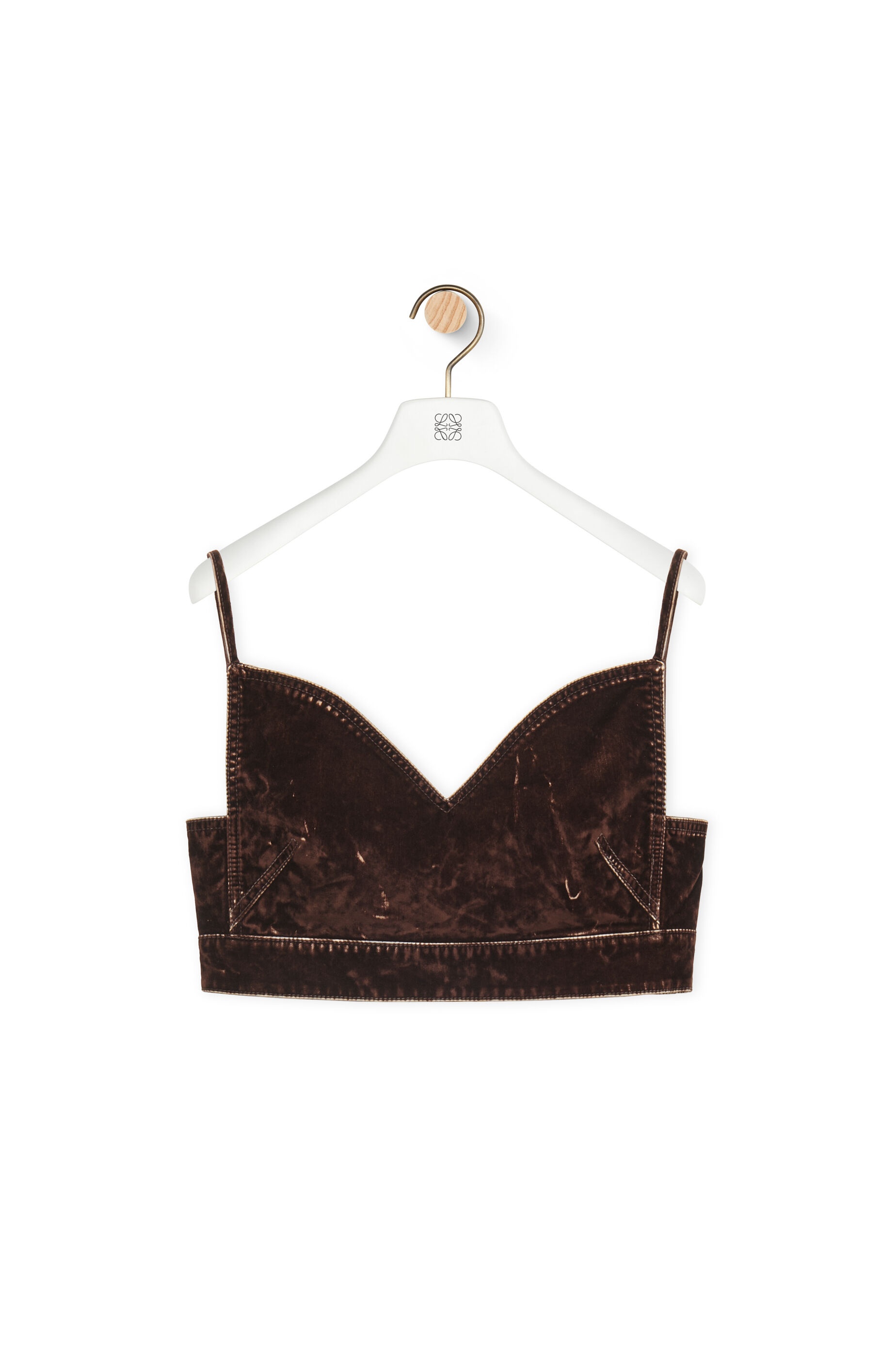 Top crafted in lightweight flocked velvet denim. Each piece is individually overdyed, stonewashed, and distressed to create visual textures. - Slim fit - Cropped length - Thin straps - Rear button fastening Details - Colour: Coffee Bean - Main material: Cotton/Elastan - Weight: 0.2 kg - Model ID: S540Y12X01 - Made in: Italy