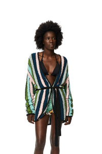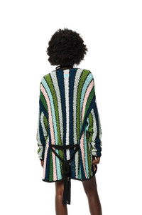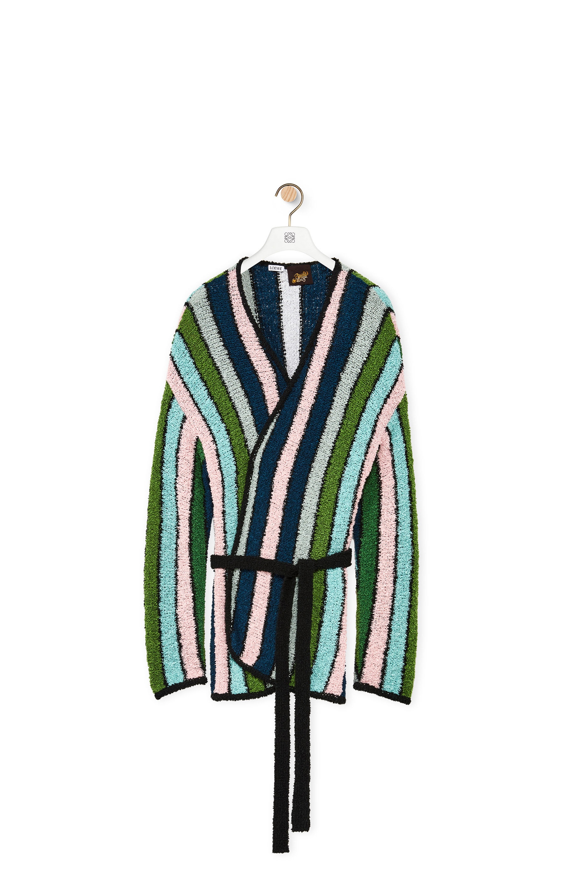 Belted cardigan in multi-colour stripes with a contrast edge and contrast belt. - Relaxed fit - Embossed LOEWE Paula's Ibiza leather patch Details - Colour: Green Multitone - Main material: Cotton/Polyamide - Weight : 0.7 kg - Model ID: S616Y16K13 - Made in: Italy