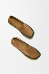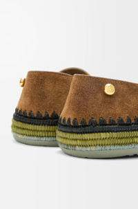 Slipper in suede featuring a hand-crafted raffia embroidery and a signature petal toe shape. - 5mm heel - Anagram Pebble at the side - Extra-padded insole - Anagram-embossed rubber outsole - Suede bonding Colour: Brown Main material: Suede/Raffia Weight: 0.4 kg Made in: Spain