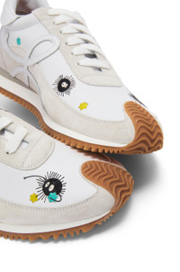 Lace up sneaker with a soft upper and honey rubber waves sole that curves around the toe and to the back of the heel. This version features Susuwatari crafted in leather marquetry and laminated stars. Part of the LOEWE x Spirited Away capsule collection. - Gold LOEWE logo - Embossed Anagram Details - Colour: Soft White/Black - Main material: Calf - Weight : 0.93 kg - Model ID: L928282X05 - Made in: Italy
