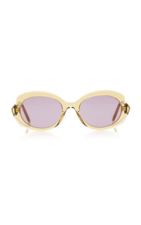 Handcrafted from the highest quality materials, Loewe's eyewear blends vintage inspiration with modern sensibilities. The 'Swan' sunglasses feature round frames made from transparent acetate with violet lenses and the label's moniker at the temples. PRODUCT DETAILS - Composition: acetate - 100% UVA/UVB protection - Designer color: Shiny Dark Green/ Violet - Made in Italy