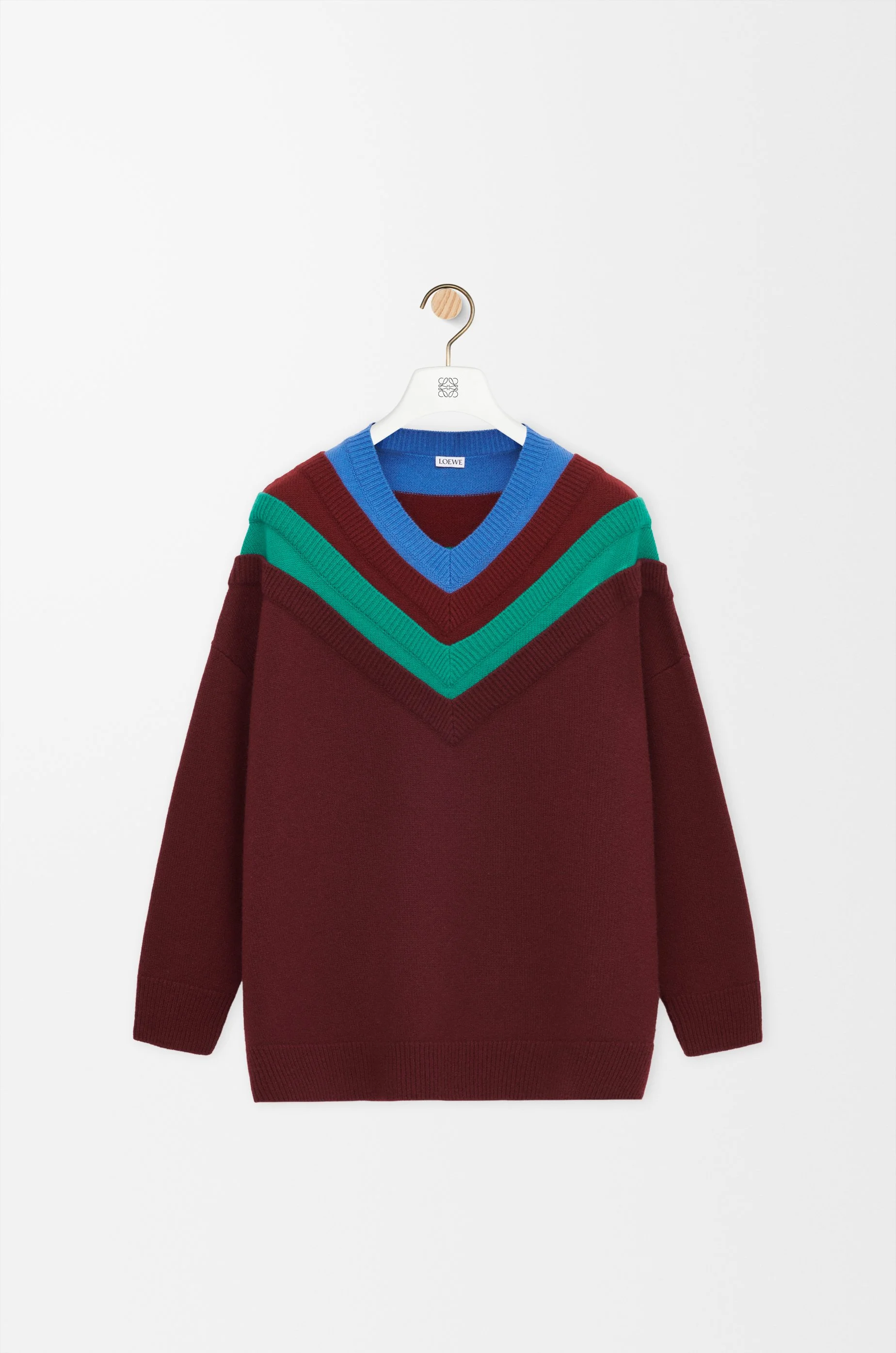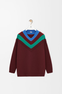 Sweater in medium-weight wool featuring a trompe l’œil layered construction. - Relaxed fit, long length - V-neck - Ribbed collar, cuffs and hem - Anagram embossed leather tab placed at the side Colour: Green/Red/Multicolor Main material: Wool Weight: 0.4 kg Made in: Italy Materials & care Main Material: 100% wool