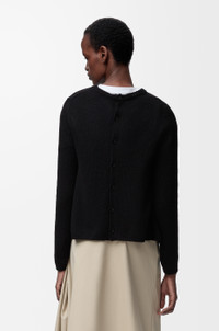 Sweater in lightweight cashmere featuring a trapeze silhouette with button fastening at the back. - Regular fit, regular length - Round neck - Ribbed collar, cuffs and hem - Anagram embroidery placed on the chest Colour: Black Main material: Cashmere Weight: 0.24 kg Made in: Italy Materials & care Main Material: 100% cashmere