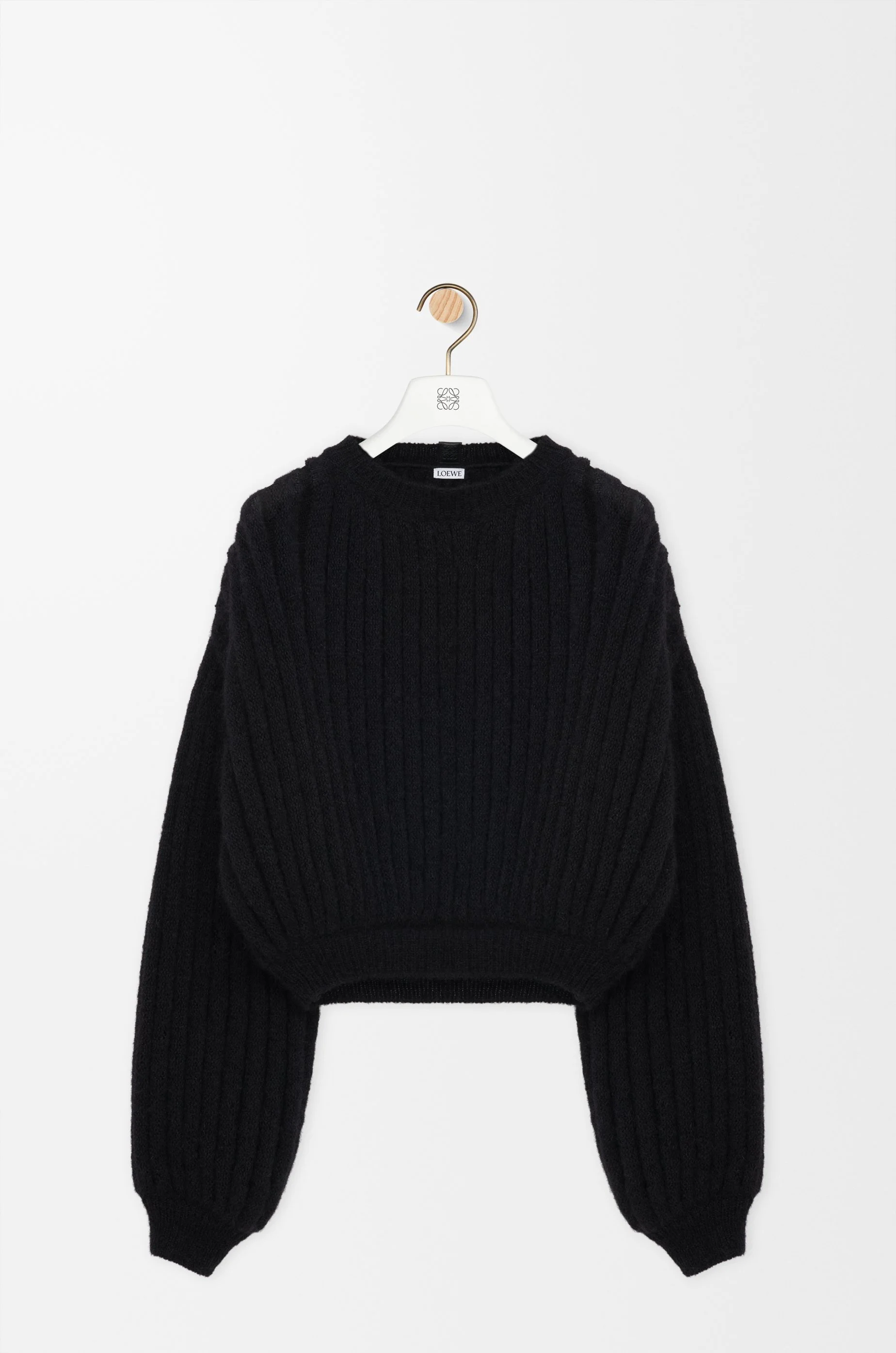 Sweater in medium-weight brushed mohair blend featuring balloon sleeves. - Relaxed fit, regular length - Round neck - Ribbed collar, cuffs and hem - Anagram embossed leather tab placed at the back Colour: Black Main material: Mohair/cotton Weight: 0.42 kg Made in: Italy Materials & care Main Material: 47% mohair 25% polyamide 23% cotton 5% wool