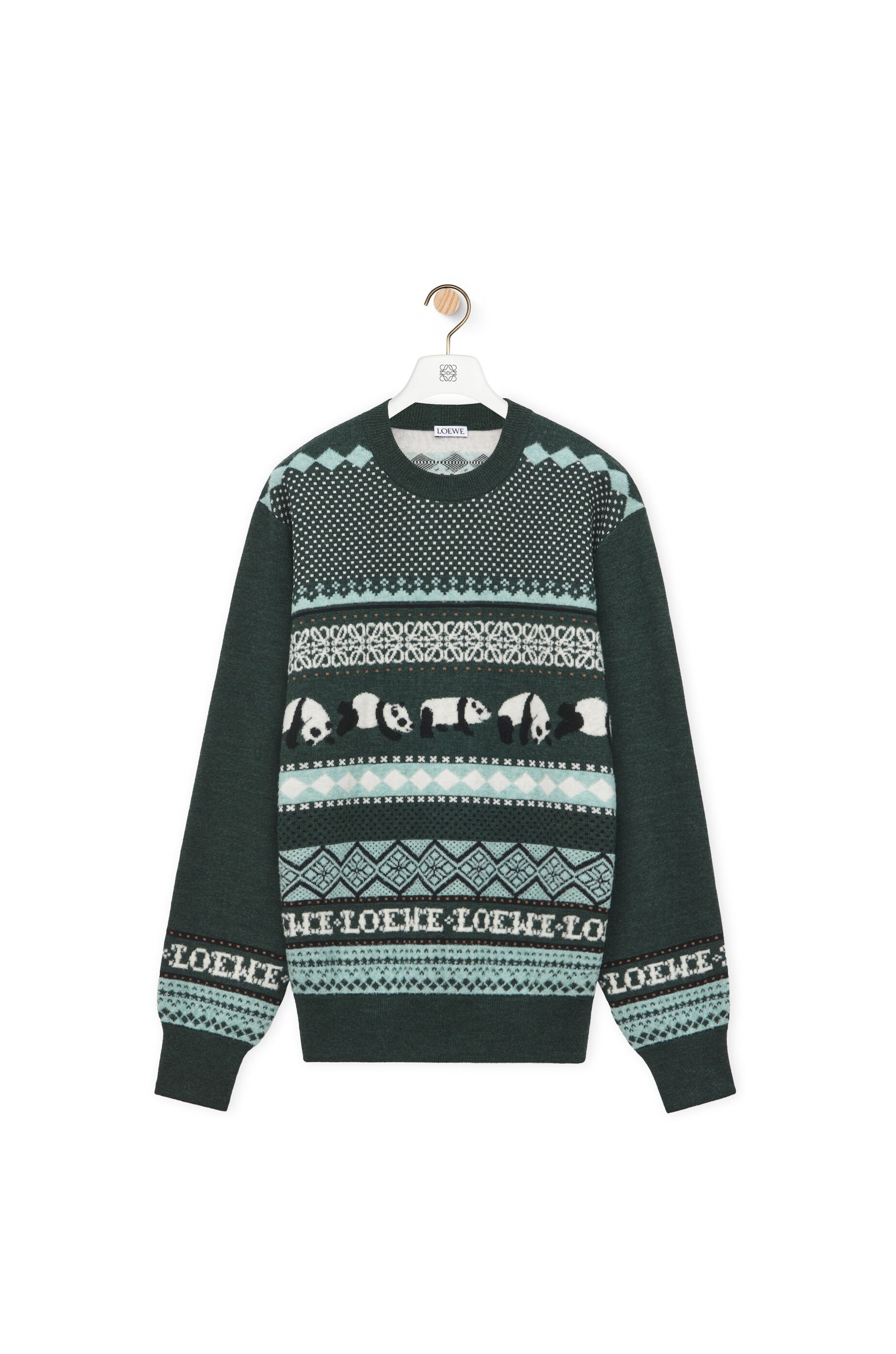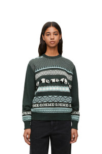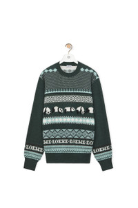 Sweater crafted in medium-weight wool. This sweater is part of the LOEWE x Suna Fujita collaboration. - Jacquard knit - Regular fit - Regular length - Motifs featuring Panda, LOEWE and Anagram - Round neck - Ribbed collar, cuffs and hem Details - Colour: Dark Green/Multicolour - Main material: Wool - Weight: 0.5 kg - Model ID: S359Y14KF1 - Made in: Italy