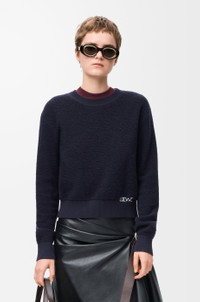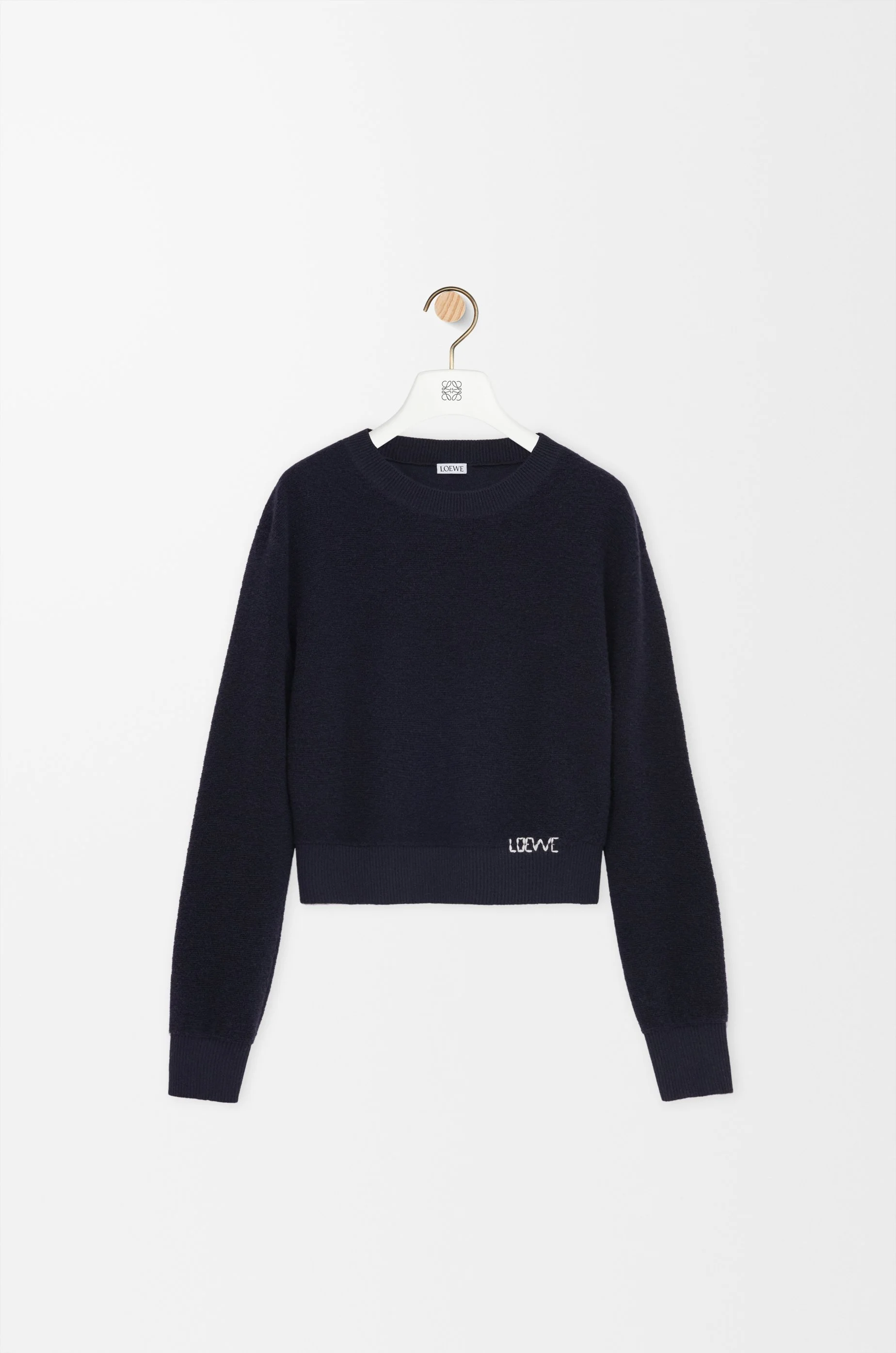 Sweater in medium-weight wool featuring a LOEWE hand-embroidery placed at the hem. - Regular fit, regular length - Round neck - Ribbed collar, cuffs and hem Colour: Navy Blue Main material: Wool Weight: 0.25 kg Made in: Italy