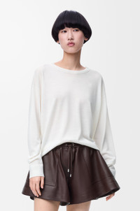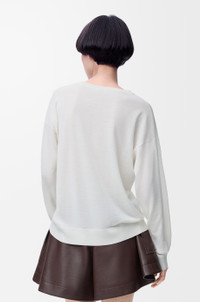 Sweater in ultra-lightweight wool. - Relaxed fit, regular length - Jersey stitch - Round neck - Ribbed collar, cuffs and hem - Anagram embroidery placed on the chest Colour: White Main material: Wool Weight: 0.2 kg Made in: Italy Materials & care Main Material: 100% wool