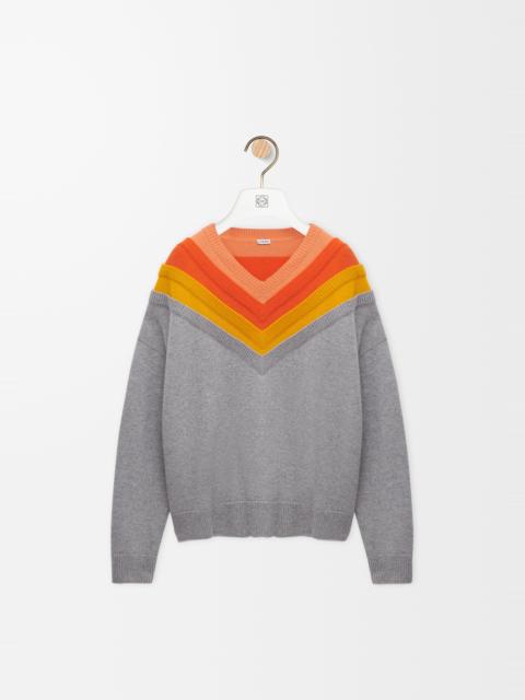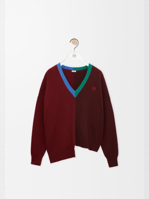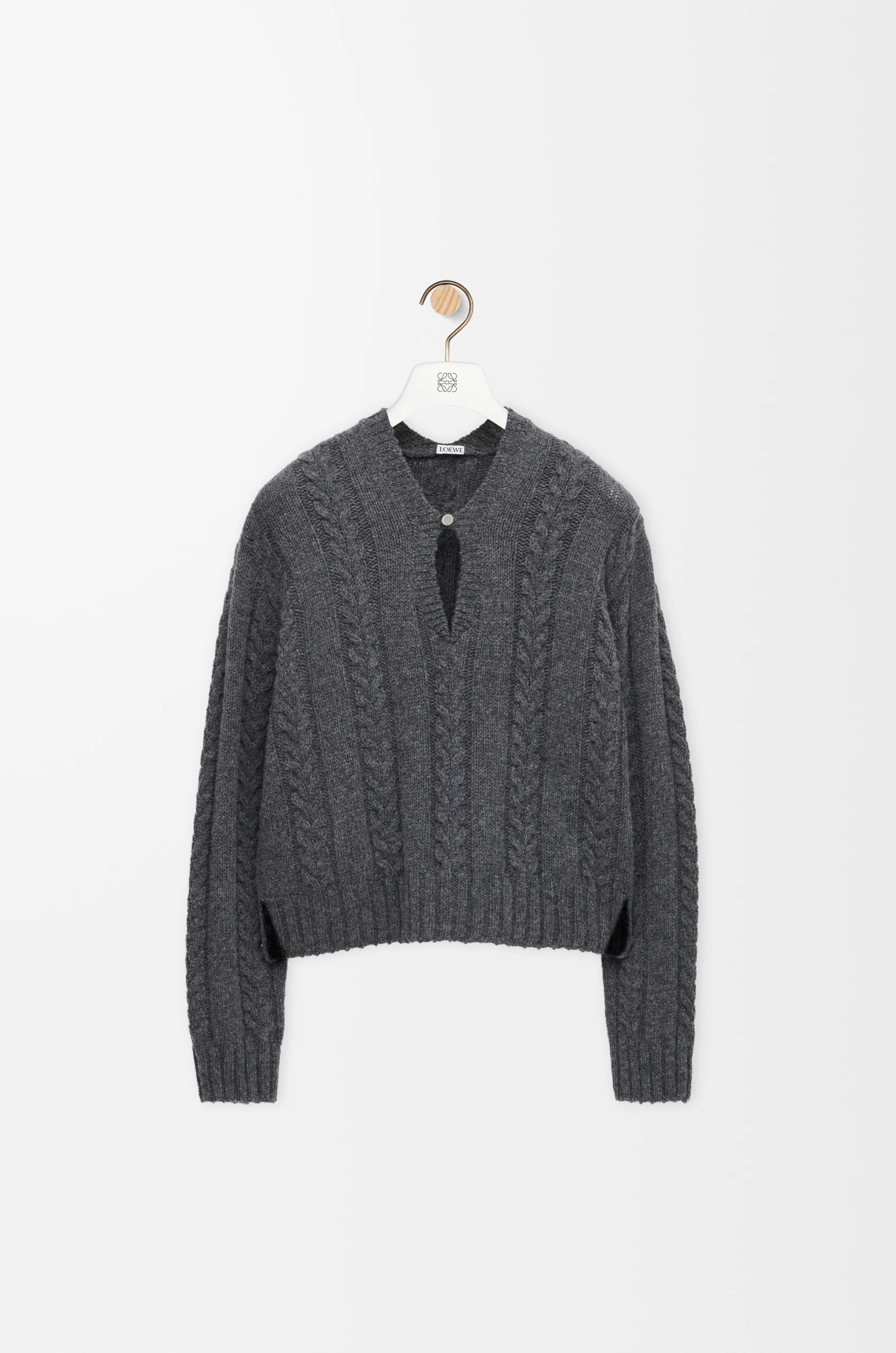 Sweater in medium-weight textured wool mouline featuring a V-neck with Anagram engraved fastening. - Regular fit, regular length - Ribbed collar, cuffs and hem - Anagram leather tab placed at the side Colour: Grey Main material: Wool Weight: 0.4 kg Made in: Italy Materials & care Main Material: 100% wool