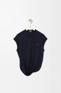 Sweater in lightweight merino wool featuring an asymmetric silhouette with a twisted draped construction. - Relaxed fit, regular length - V-neck - Double L embroidery placed on the chest Colour: Dark Navy Main material: Wool Weight: 0.2 kg Made in: Italy