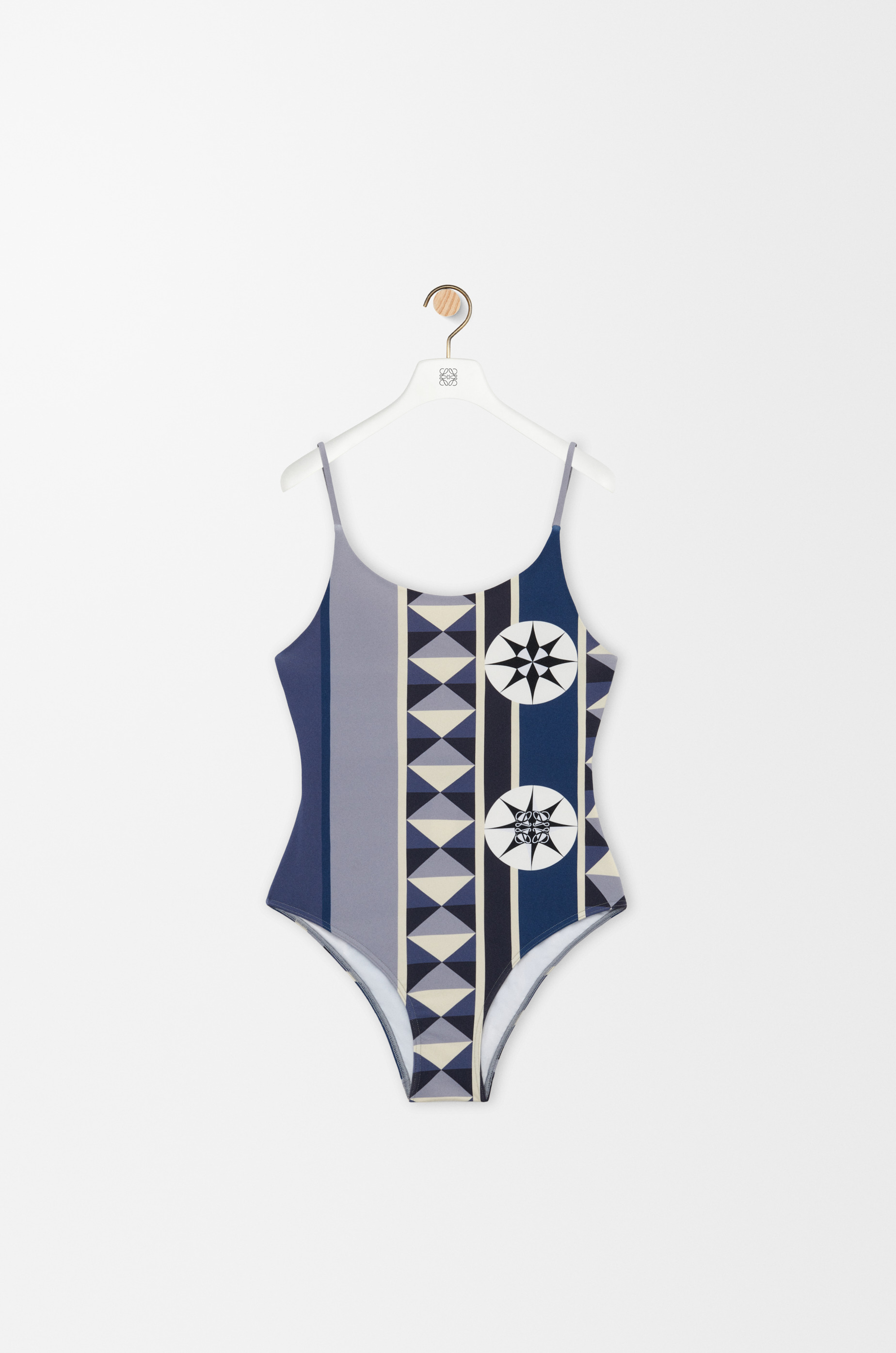 Swimsuit in lightweight technical jersey featuring an exclusive compass print with a placed Anagram. - Regular fit - Adjustable straps - Scoop neck - Low back Colour: Blue/Multicolor Main material: Polyamide/Elasthane Weight: 0.1 kg Made in: Italy