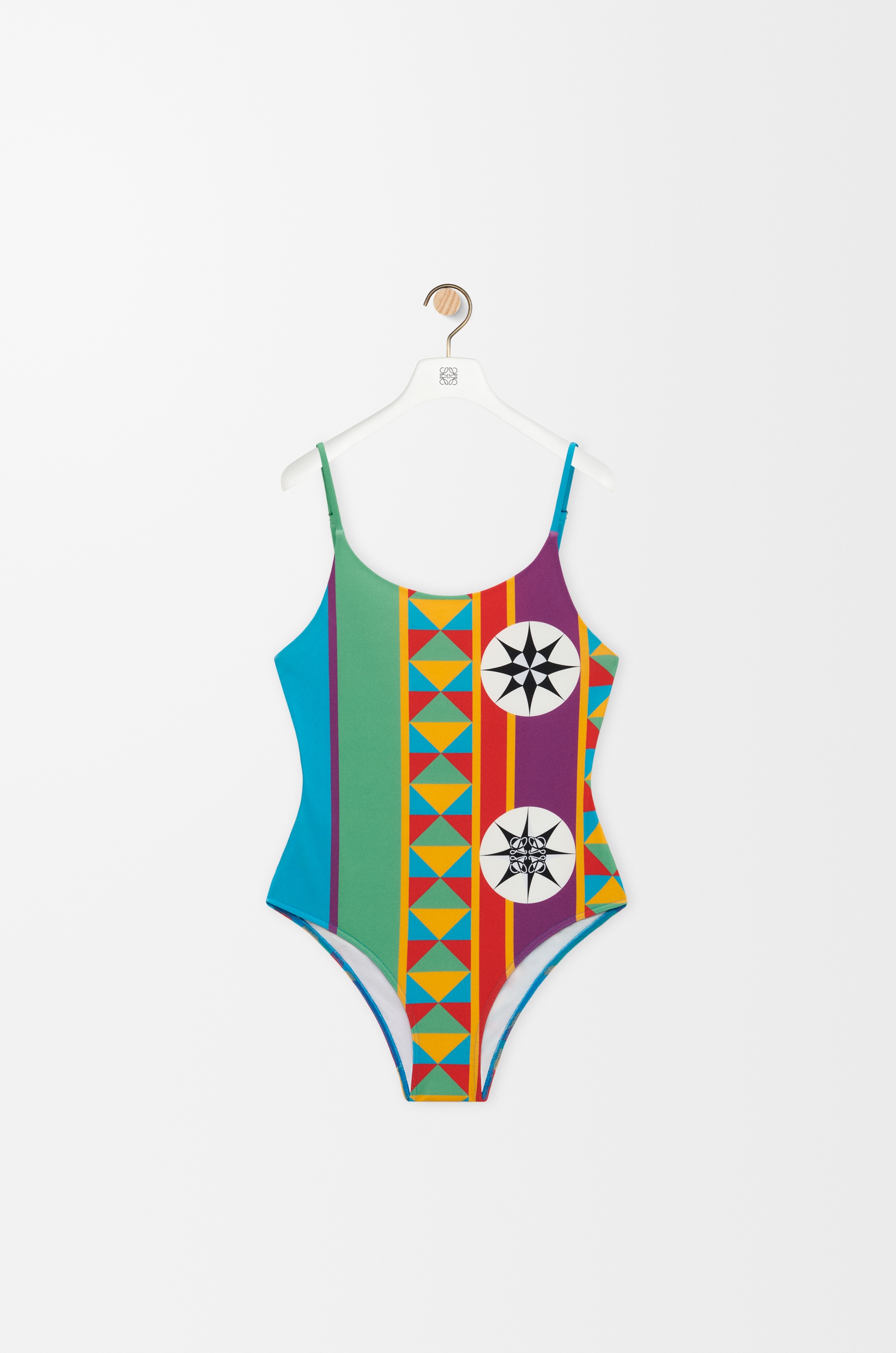 Swimsuit in lightweight technical jersey featuring an exclusive compass print with a placed Anagram. - Regular fit - Adjustable straps - Scoop neck - Low back Colour: Multicolor Main material: Polyamide/Elasthane Weight: 0.1 kg Made in: Italy