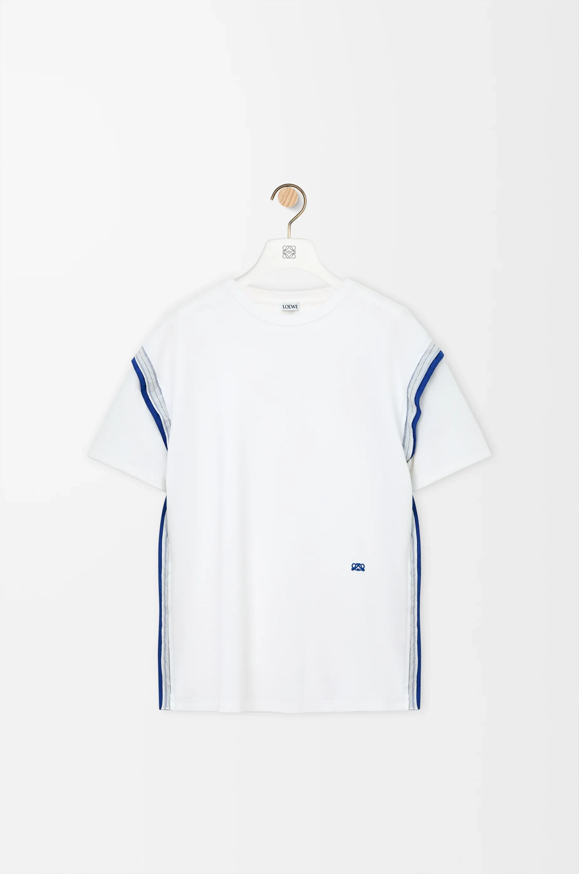 T-shirt in medium-weight compact cotton blend featuring multi-layered detailing at the sides. - Regular fit, regular length - Crew neck - Double L embroidery placed at the front Colour: White Main material: Cotton/polyamide Weight: 0.19 kg Made in: Portugal