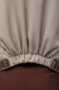 Jacket in lightweight fluid wool tailoring featuring a single-breasted construction and a gathered back with a leather belt detail. - Regular fit, regular length - Notch lapel - Button front fastening - Split cuffs - Chest welt pocket, flap pockets - Fully lined Colour: Beige Melange Main material: Wool Weight: 0.65 kg Made in: Italy Materials & care Main Material: 100% wool