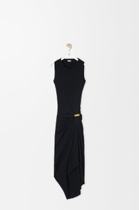 Dress in lightweight stretch ribbed cotton featuring asymmetric draping with a detachable LOEWE-engraved metal embellishment. - Regular fit, mid length Colour: Black Main material: Cotton/Elastan Weight: 0.1 kg Made in: Portugal Materials & care Main Material: 97% cotton 3% elastane