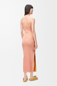 Dress in lightweight stretch viscose blend featuring an Anagram jacquard placed at the front. - Slim fit, mid length - Halterneck - Side slit Colour: Pink/Yellow Main material: Cotton/Viscose/Polyester Weight: 0.4 kg Made in: Italy