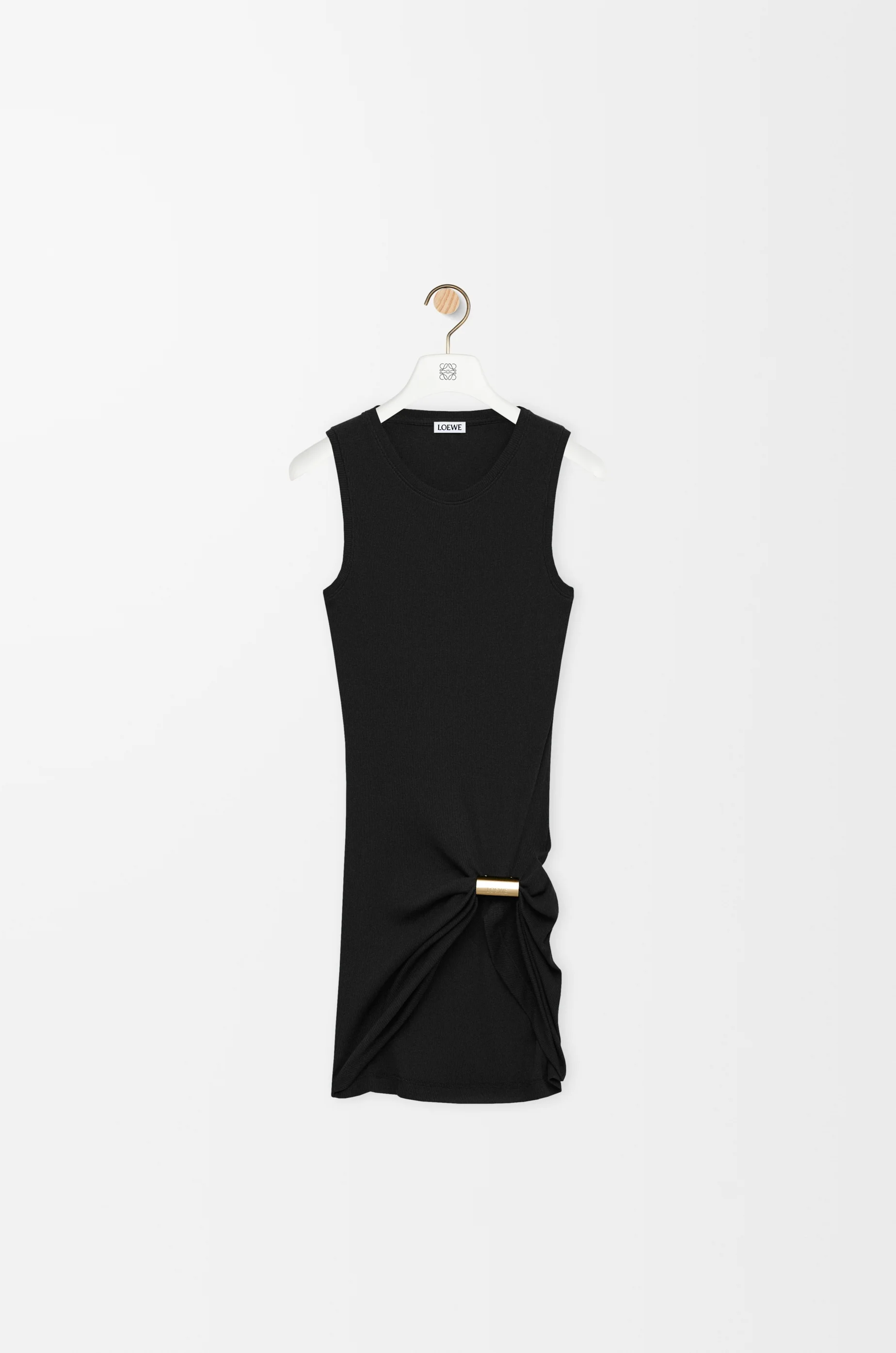 Top in lightweight stretch ribbed cotton featuring asymmetric draping with a detachable LOEWE-engraved metal embellishment. - Regular fit, regular length Colour: Black Main material: Cotton/Elastan Weight: 0.1 kg Made in: Portugal Materials & care Main Material: 97% cotton 3% elastane