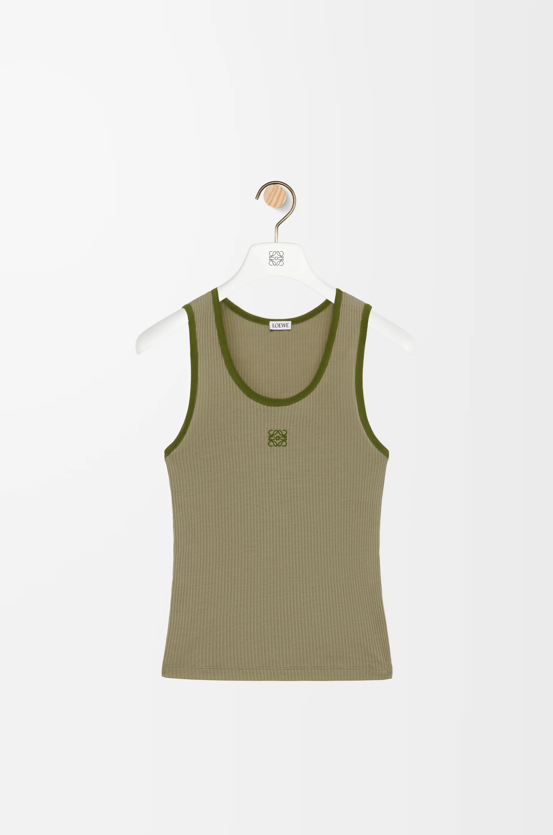 Tank top crafted in lightweight ribbed silk jersey. - Slim fit - Regular length - Scoop neck - Anagram embroidery placed at the front Details - Colour: Military Green - Main material: Silk - Weight: 0.1 kg - Model ID: S540Y23X30 - Made in: Italy