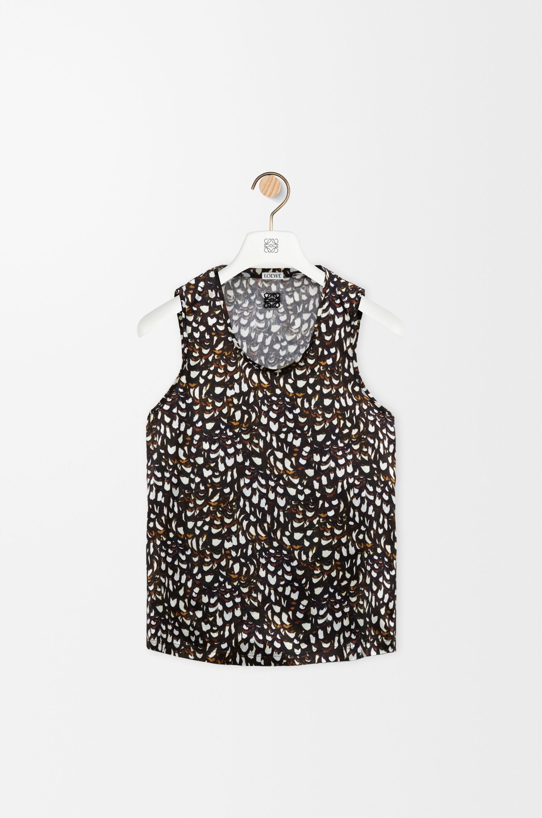 Top in medium-weight viscose satin featuring an allover pheasant feather print. - Regular fit, regular length - Scoop neck - Anagram embroidery placed at the back Details - Colour : Brown/White - Main material : Viscose - Weight : 0.1 kg - Model ID : S540Y07XGA - Made in : Italy