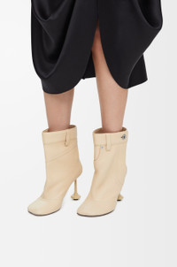 Ankle bootie crafted in nappa lambskin featuring the details of a classic five pocket trouser design applied on our Toy pump structure. With our iconic petal-shaped toe and lacquered toy heel. - 90mm heel - Leather sole Details - Colour: Oat Milk - Main material: Lamb - Heel height: 9.5 - Weight: 0.7 kg - Model ID: L815286X20 - Made in: Italy