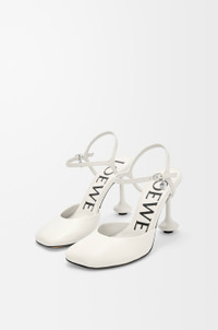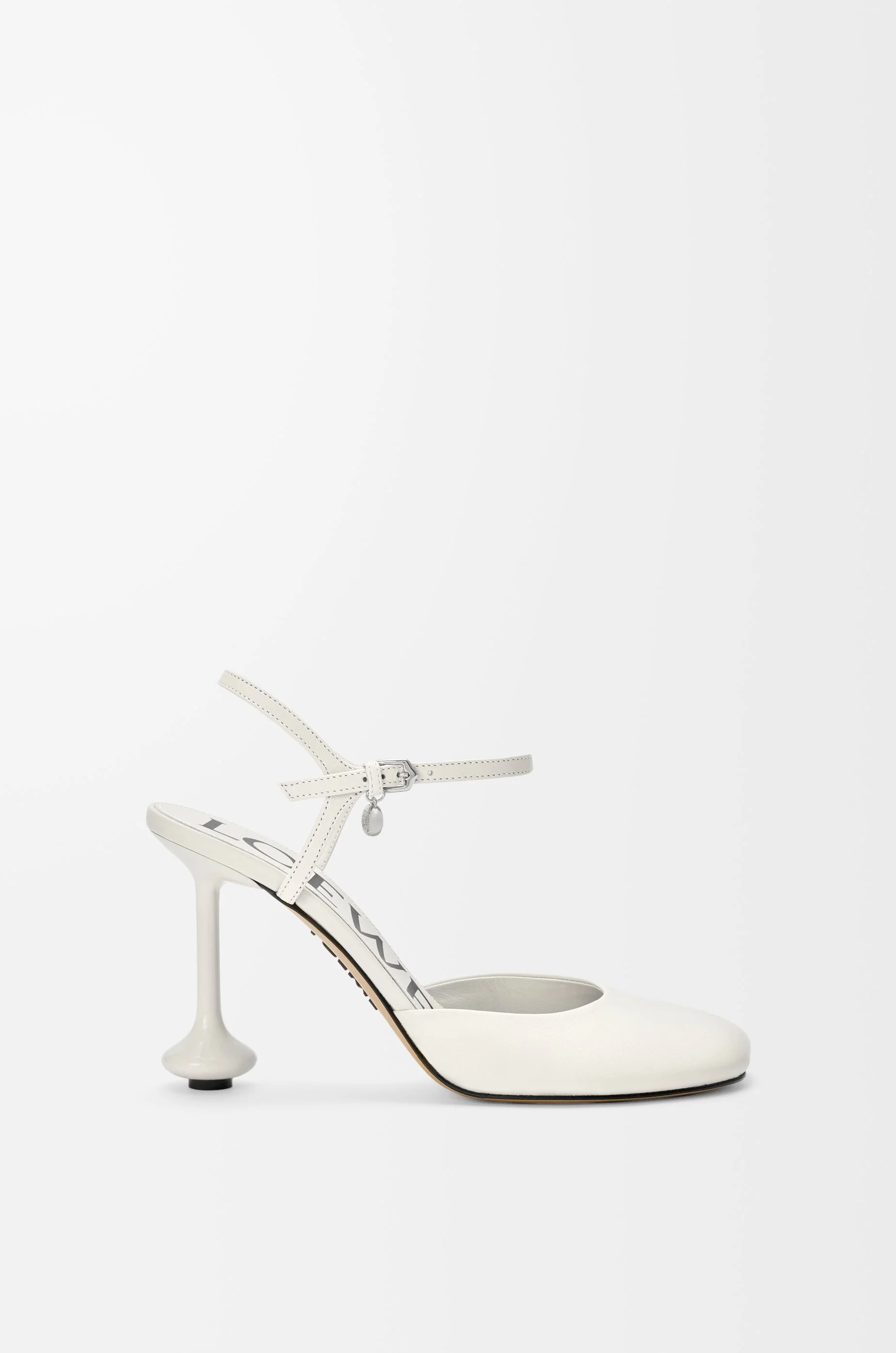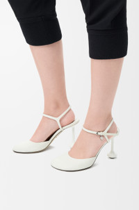 Pump in lambskin with a signature toe shape and an adjustable ankle strap with an Anagram Pebble embellishment. - 90mm lacquered Toy heel - Buckle closure - Engraved Anagram - Leather outsole Colour: Anthurium White Main material: Lambskin Weight: 0.5 kg Made in: Italy