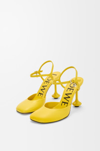Pump in lambskin with a signature toe shape and an adjustable ankle strap with an Anagram Pebble embellishment. - 90mm lacquered Toy heel - Buckle closure - Engraved Anagram - Leather outsole Colour: Dandelion Main material: Lambskin Weight: 0.5 kg Made in: Italy