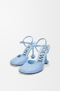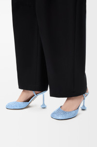 Pump in rhinestone-embellished suede with a signature toe shape and an adjustable ankle strap with an Anagram Pebble embellishment. - 90mm lacquered Toy heel - Buckle closure - Engraved Anagram on Pebble - Leather outsole Colour: Baby Blue Main material: Suede/Strass Weight: 0.5 kg Made in: Italy