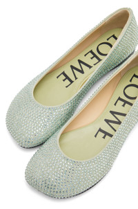 Ballerina crafted in suede kidskin and all over rhinestones featuring the LOEWE petal signature toe shape. - Leather sole Details - Colour: Pistachio - Main material: Suede Kidskin - Heel height: 1 - Weight: 0.5 kg - Model ID: L815466X43 - Made in: Italy