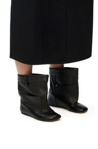 Flat bootie crafted in soft nappa lambskin. This hybrid design juxtaposes details of a classic five pocket trouser over our signature petal-shaped toe box. - Leather outsole and insole Details - Colour: Black - Main material: Lamb - Heel height: 1 - Weight: 0.7 kg - Model ID: L814285X51 - Made in: Italy