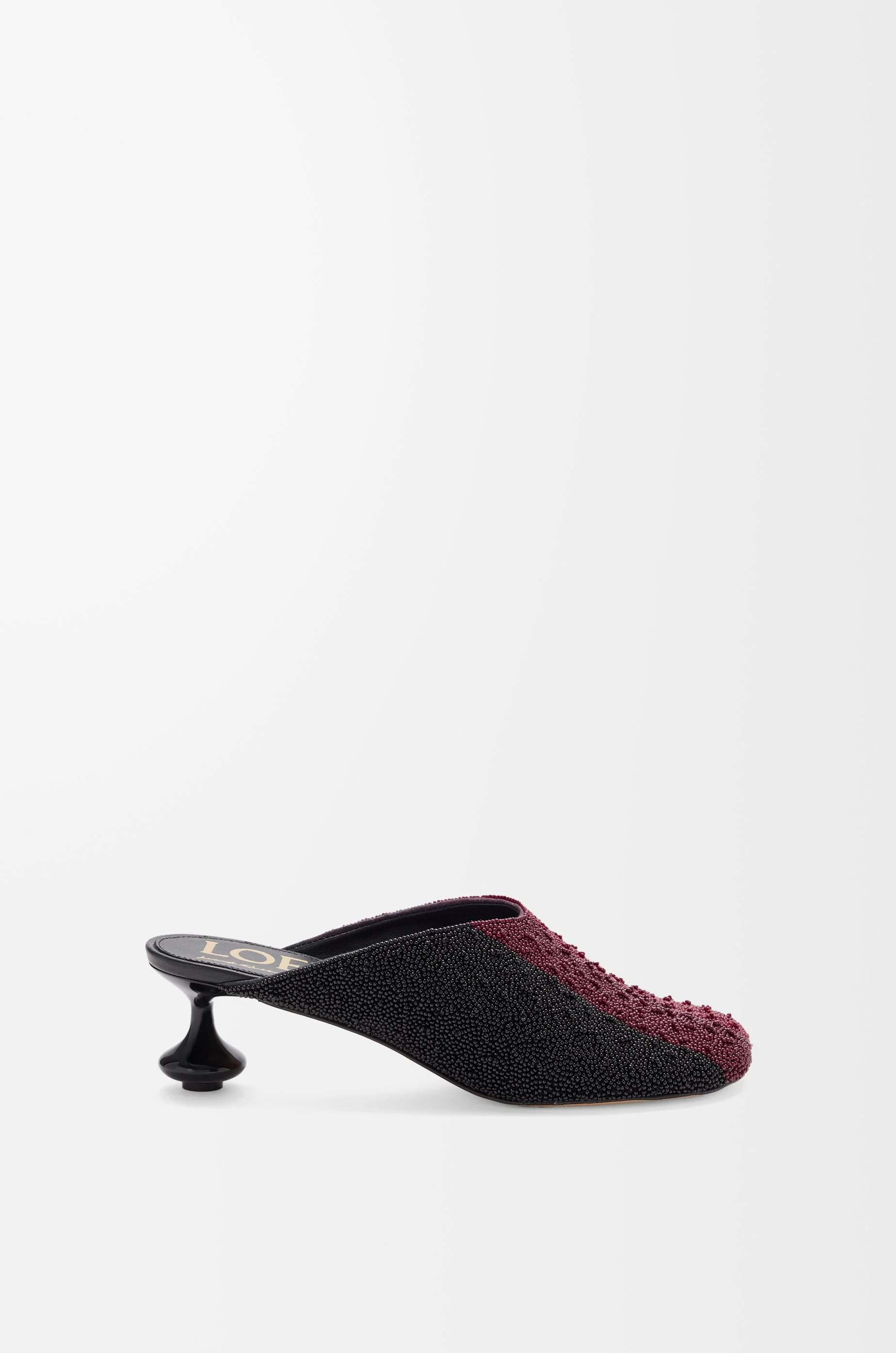 Mule in hand-embroidered canvas featuring the signature petal shaped toe, a lacquered Toy heel and a geometric pattern inspired by Josef Albers's "Homage to the Square" series on the upper. This shoe is part of the LOEWE x Albers collection. - 45mm heel - Leather insole and outsole Colour: Black/Dark Burgundy Main material: Embroidered Canvas Weight: 0.55 kg Made in: Italy