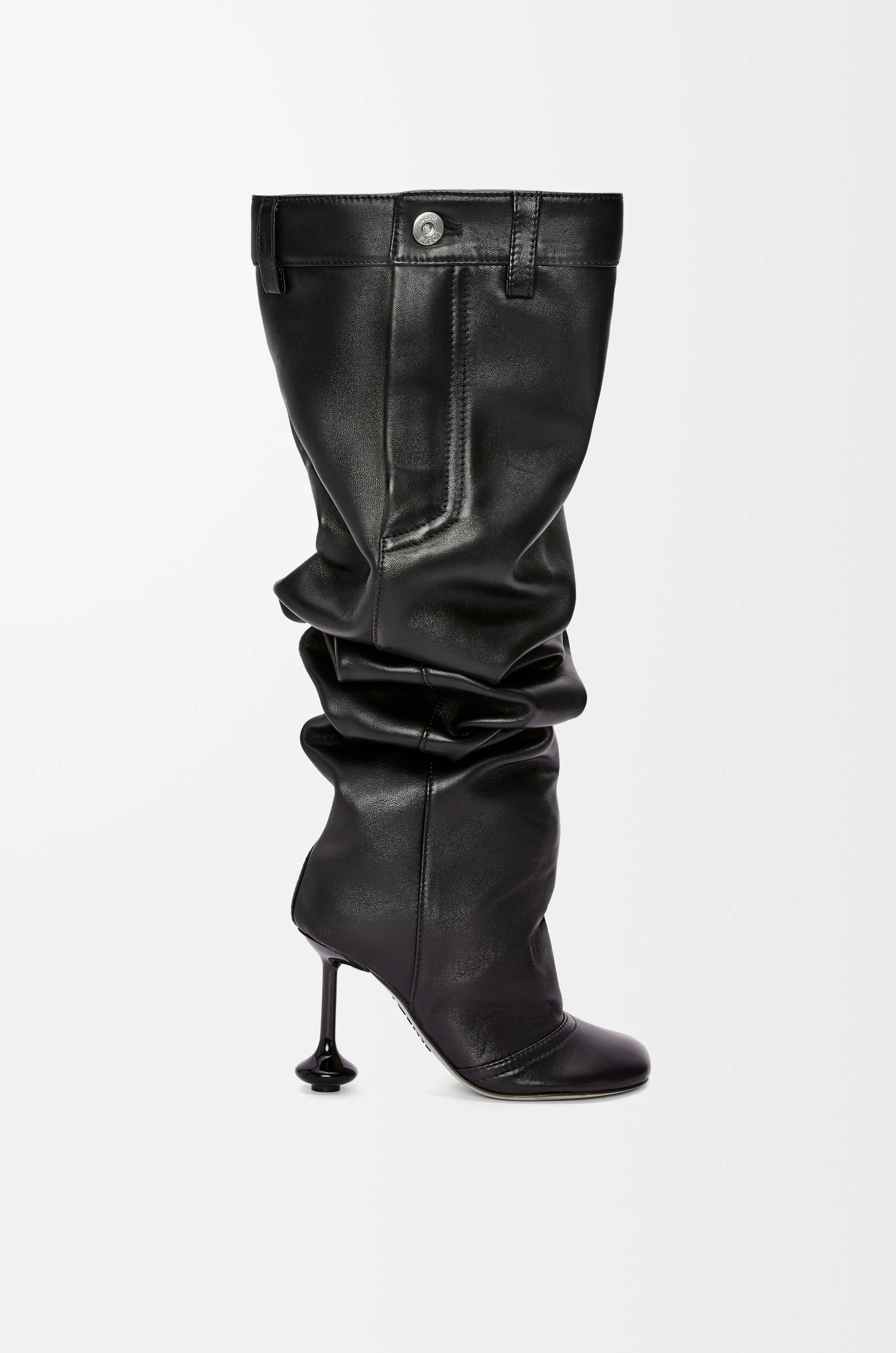 Extra slouchy over-the-knee boot crafted in soft nappa lambskin, featuring the details of a classic five pocket trouser design applied on our Toy pump structure. Featuring our iconic petal-shaped toe and lacquered toy heel. - 90mm heel - Leather sole Details - Colour: Black - Main material: Lamb - Heel height: 90 - Weight: 0.8 kg - Model ID: L815S04X12 - Made in: Italy