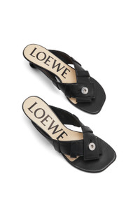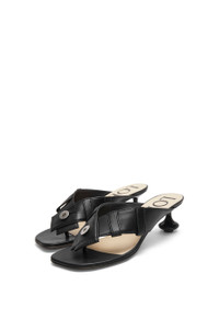 Heeled toe post sandal crafted in lambskin featuring pants details with waistband and belt loops, branded through a denim trouser button. - 45mm heel - Lacquered signature Toy heel - Soft lambskin leather - Leather sole Details - Colour : Black - Main material : Lambskin - Heel height : 4.5 - Weight : 0.37 kg - Model ID : LLST465X02 - Made in : Italy