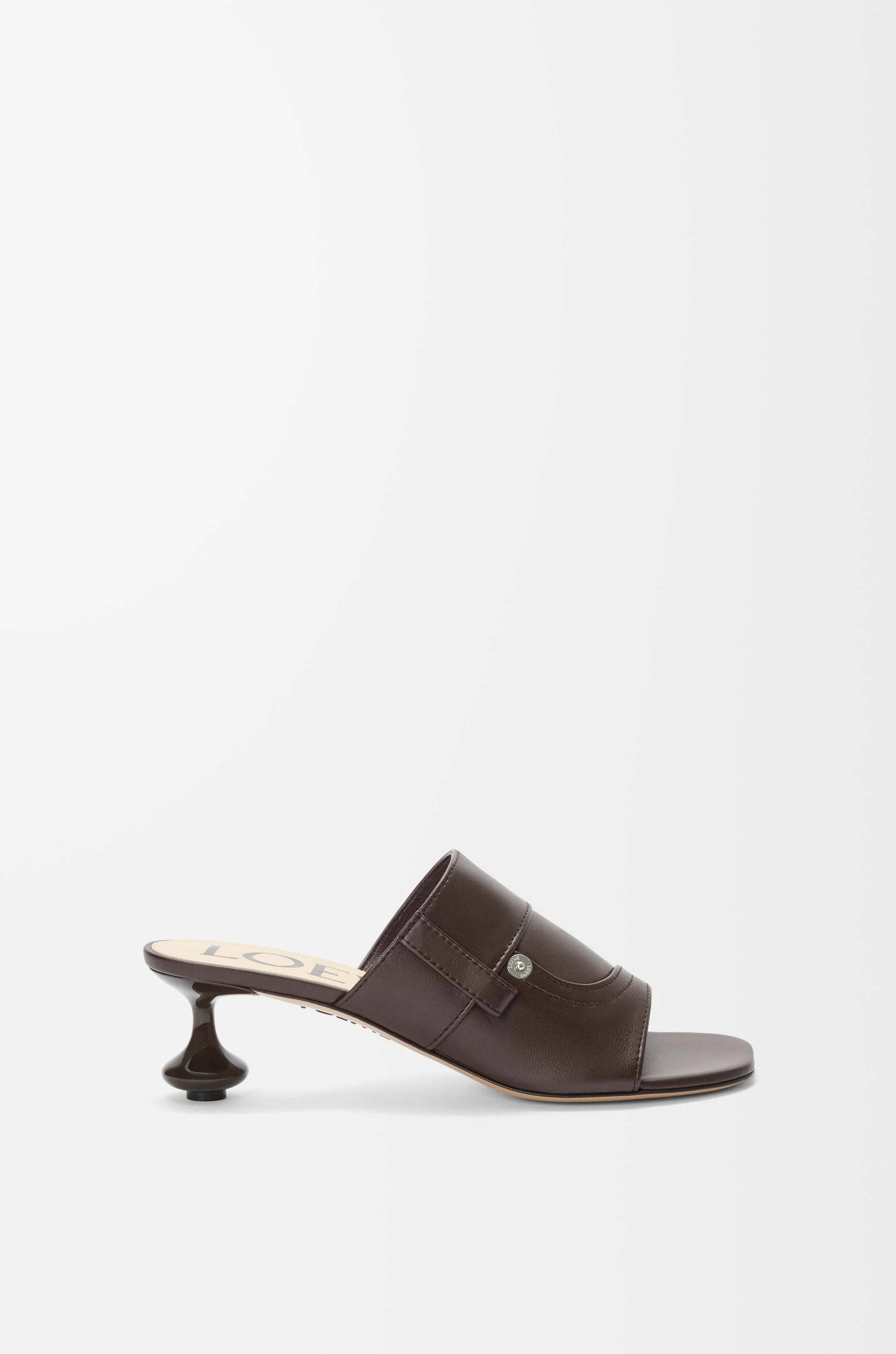 Heeled slide in lambskin featuring the details of a classic five pocket trouser design including belt loops, rivets and pockets as well as the signature toe shape. - 45mm lacquered Toy heel - Leather outsole Colour: Brownie Main material: Lambskin Weight: 0.4 kg Made in: Italy