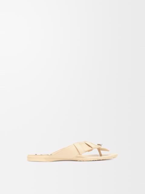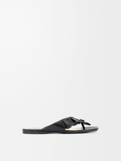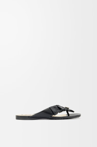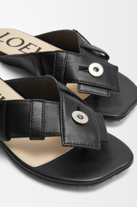 Toe post sandal crafted in lambskin featuring pants details with waistband and belt loops, branded through a denim trouser button. - Rubber outsole - Soft lambskin leather Details - Colour : Black - Main material : Lambskin - Heel height : 1 - Weight : 0.375 kg - Model ID : L814465X79 - Made in : Italy