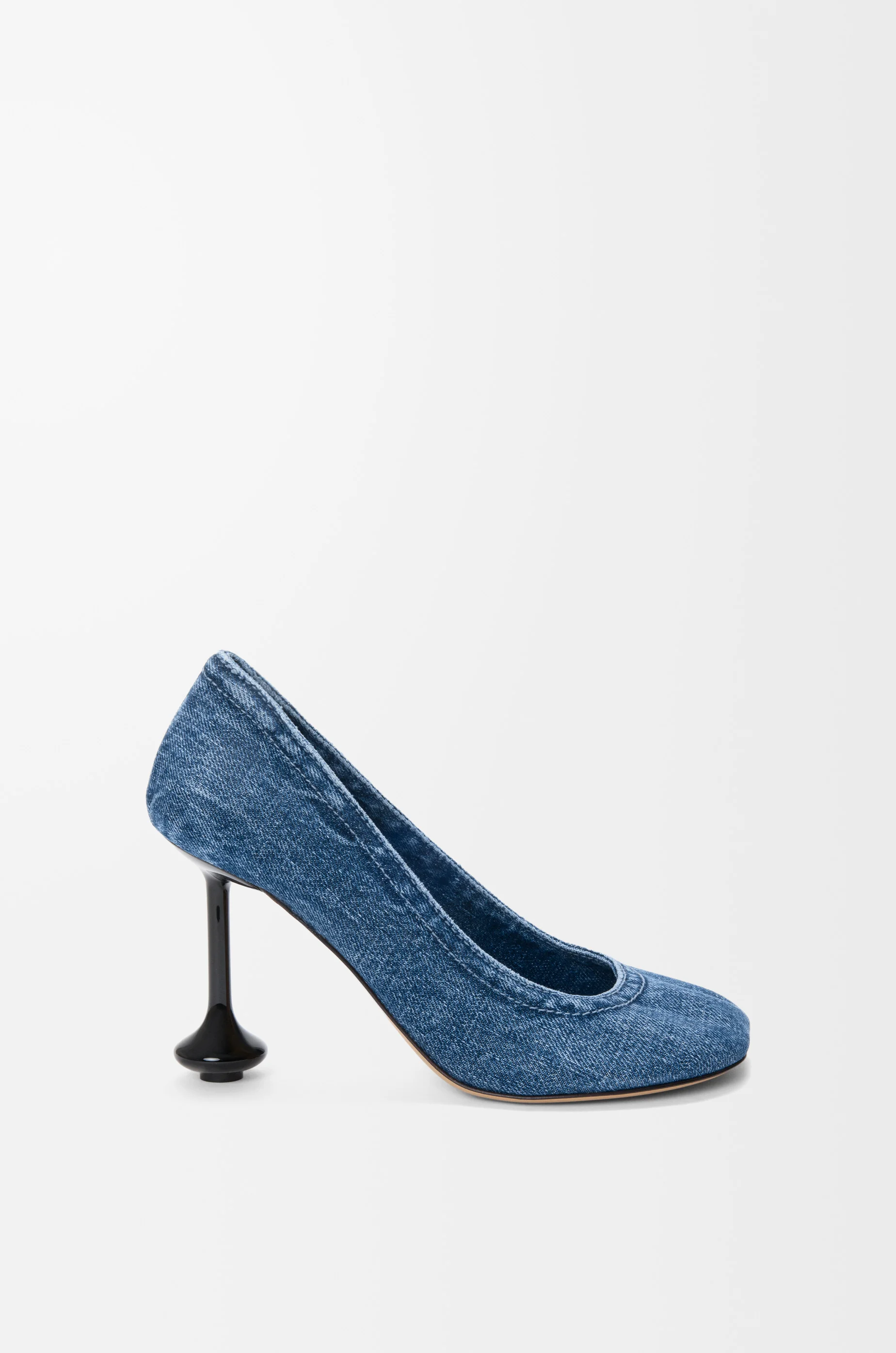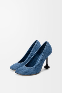 Pump in washed cotton denim with a petal shaped toe and lacquered signature Toy heel. - 90mm heel - Leather insole and outsole Colour: Washed Denim Main material: Washed Denim Weight: 0.4 kg Made in: Italy