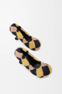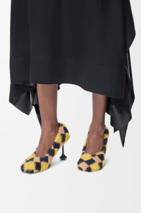 Pump in jacquard knit with a check pattern made with silky and fluffy yarns featuring the signature petal shaped toe and lacquered Toy heel. This bag is inspired by Louis Wain's "Futurist Cats" porcelain vase series. - 90mm heel - Leather insole and outsole Colour: Multicolor Deep Navy Main material: Jacquard knit Weight: 0.5 kg Made in: Italy
