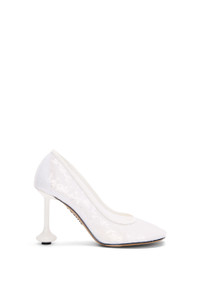 Pump crafted in mesh with allover sequins, featuring the iconic petal shaped toe and lacquered signature Toy heel. - 90mm heel - Shimmery effect Details - Colour: Transparent/White - Main material: Sequins - Heel height: 9 - Weight: 0.44 kg - Model ID: LLSTS01X02 - Made in: Italy