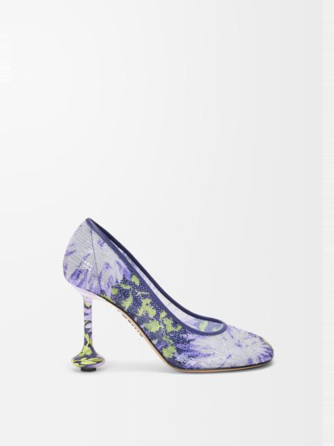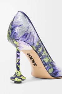 Pump in mesh with allover floral print sequins featuring a petal shaped toe and lacquered signature toy heel. - 90mm heel Details - Colour : Navy/Lilac - Main material : Sequins - Heel height : 9 - Weight : 0.4 kg - Model ID : LLSTS01X19 - Made in : Italy