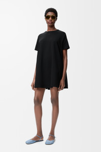 Dress in compact cotton blend jersey featuring a trapeze silhouette. - Relaxed fit, short length - Crew neck - Anagram embroidery placed at the front Colour: Black Main material: Cotton/Polyamide Weight: 0.7 kg Made in: Portugal Materials & care Main Material: 80% cotton 20% polyamide