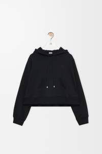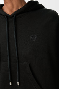 Hoodie in medium-weight cotton blend featuring a trapeze silhouette. - Relaxed fit, short length - Hooded collar with drawstring - Kangaroo pocket - Ribbed cuffs and hem - Anagram embroidery placed on the chest Colour: Black Main material: Lyocell/Cotton Weight: 0.65 kg Made in: Portugal Materials & care Main Material: 57% lyocell 43% cotton